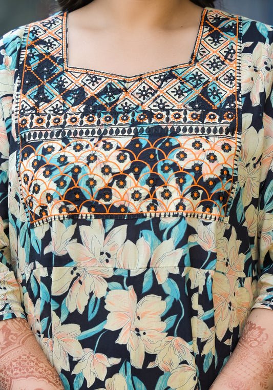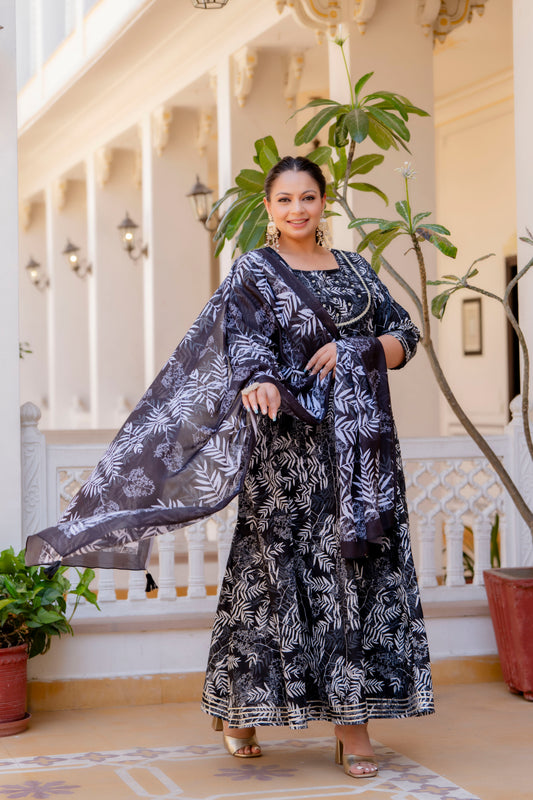 Black Embroidered Anarkali Kurta & Dupatta Set (Pure Cotton)