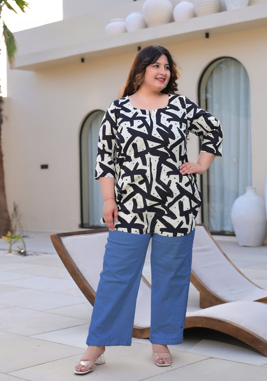 Black Abstract Printed Top