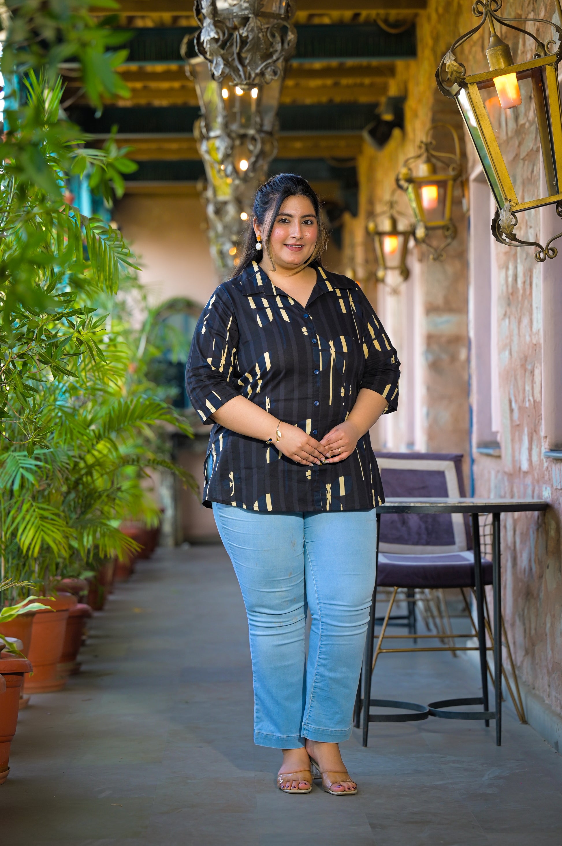 - Beautiful Collared Neck with Buttons Neckline & 3/4th Sleeves