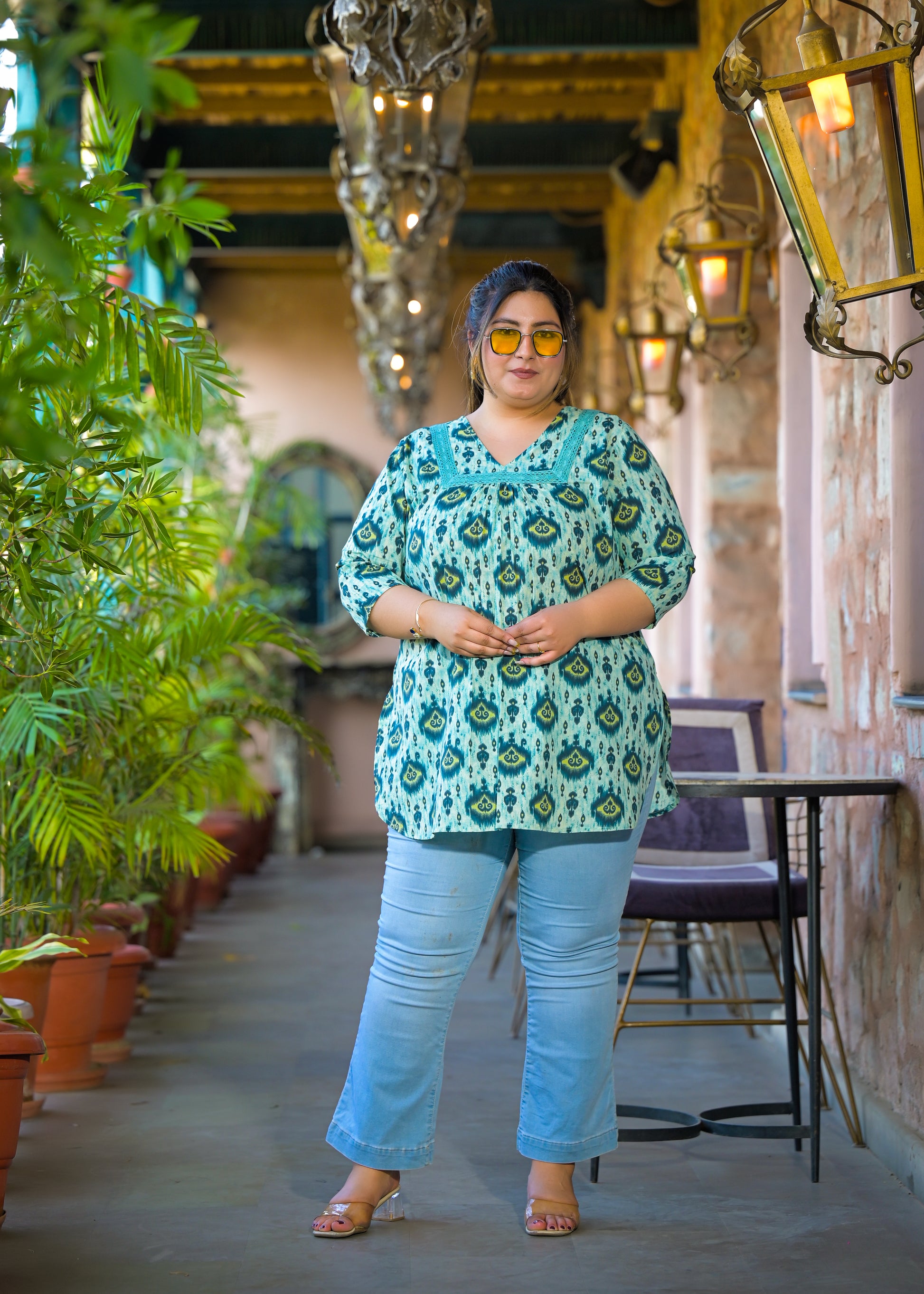 - Beautiful V Neck with Gathers Neckline & 3/4th Sleeves