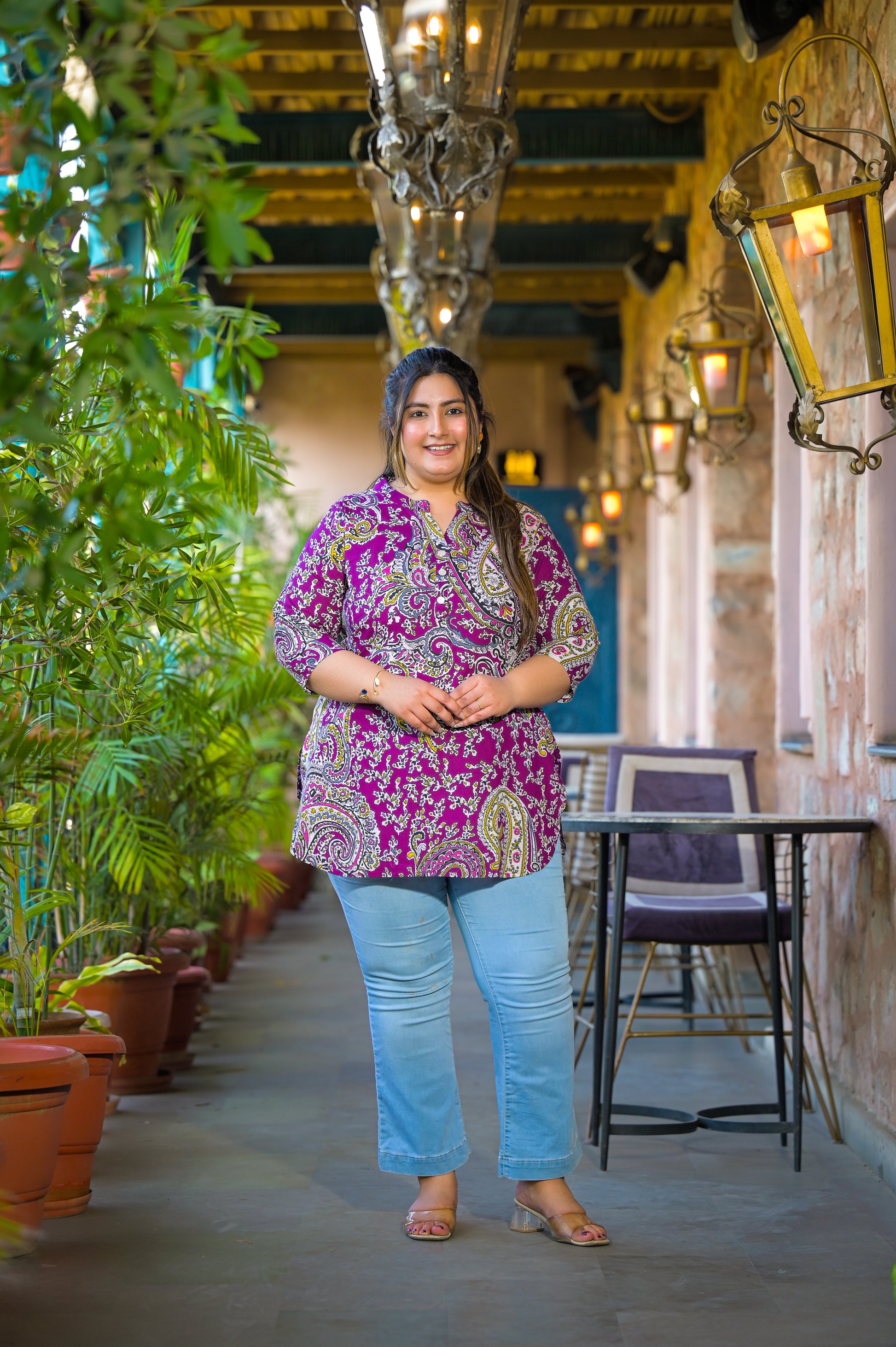 - Beautiful Collared Neck with Buttons Neckline & 3/4th Sleeves