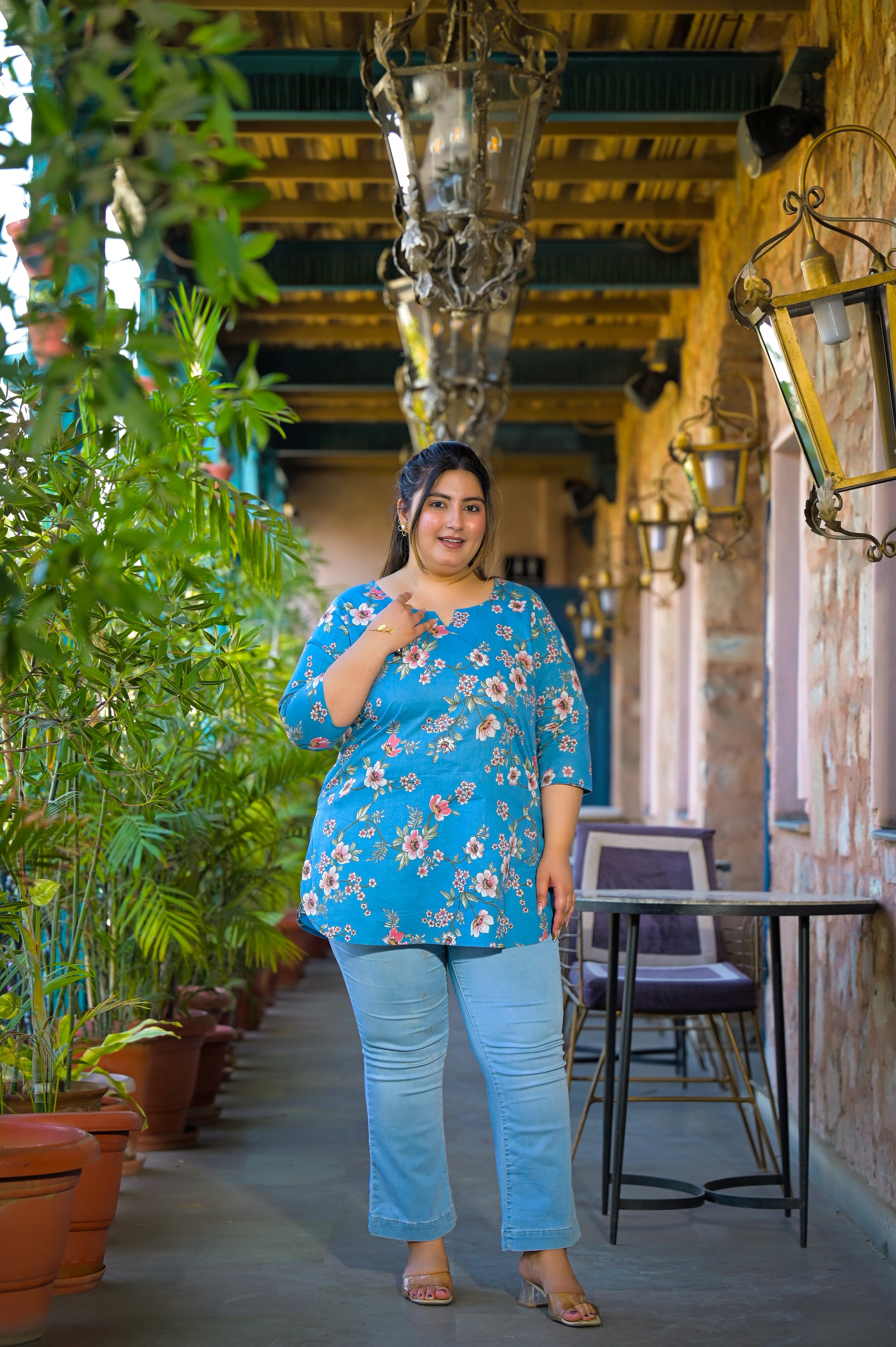 Beautiful Round Notch Neck & 3/4th Sleeves